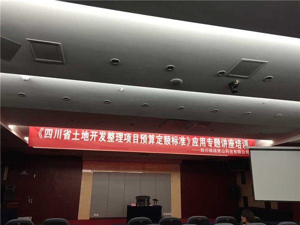 5月29日下午,四川锦瑞青山科技有限公司在四川省成都市天辰楼宾馆会议厅举办了关于《四川省土地开发整理项目预算定额标准》的应用专题讲座培训。讲座的举行得到了众多业内人士的热烈回应,现场参会人数达到300余人。本次讲座的主讲老师是四川省水利水电勘测设计院,参与编写《四川省土地开发整理项目预算定额标准》的专家郑崇坤老师。