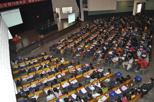 2013年3月22号下午,青山公司15周年庆现场活动在成都教育宾馆隆重召开!青山公司总经理、省造价站王强老师以及各企事业造价专家出席了本次活动。下午1点左右,用户开始陆续入场,还有特意从周边城市赶来的新用户,整个会场座无虚席,人数达到近千人。