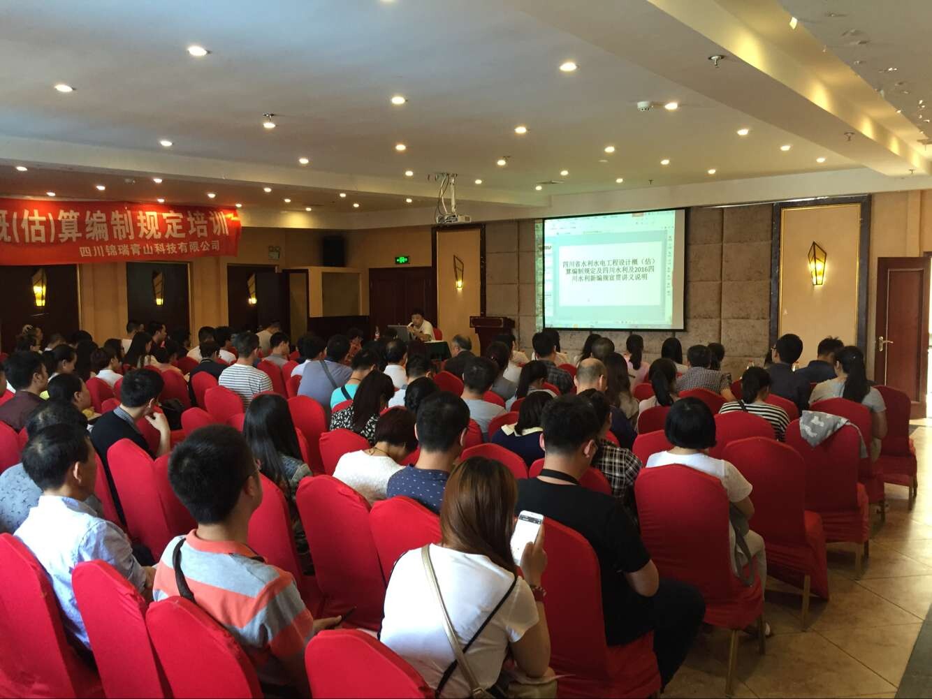 为了更好地服务于客户,四川锦瑞青山科技有限公司( 以下简称:“锦瑞青山”)于2016年5月10日在泸州举办“《四川省水利水电工程设计概(估)算编制规定》和四川2015建筑定额营改增”的培训。现场人数达到120人。市及各县区财评、审计局、设计院、咨询单位、水务局、施工单位等参加了本次培训。