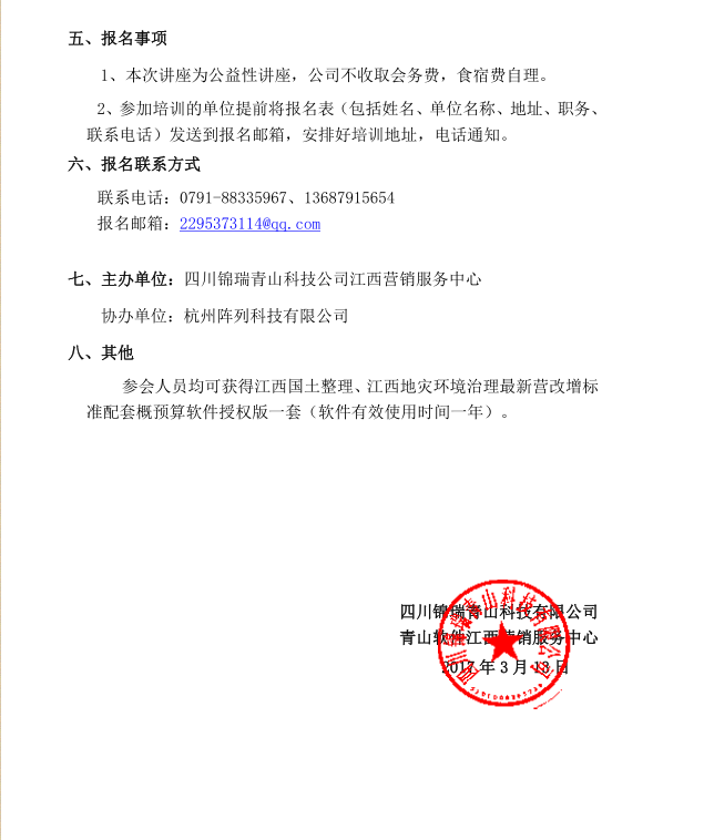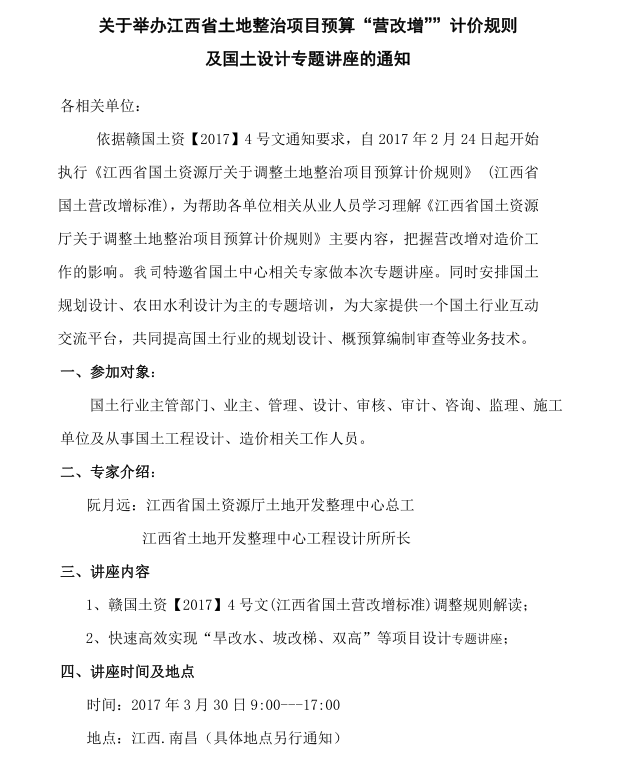 热烈祝贺江西省2017年土地整治项目预算“营改增”计价规则及国土设计专题讲座成功举办