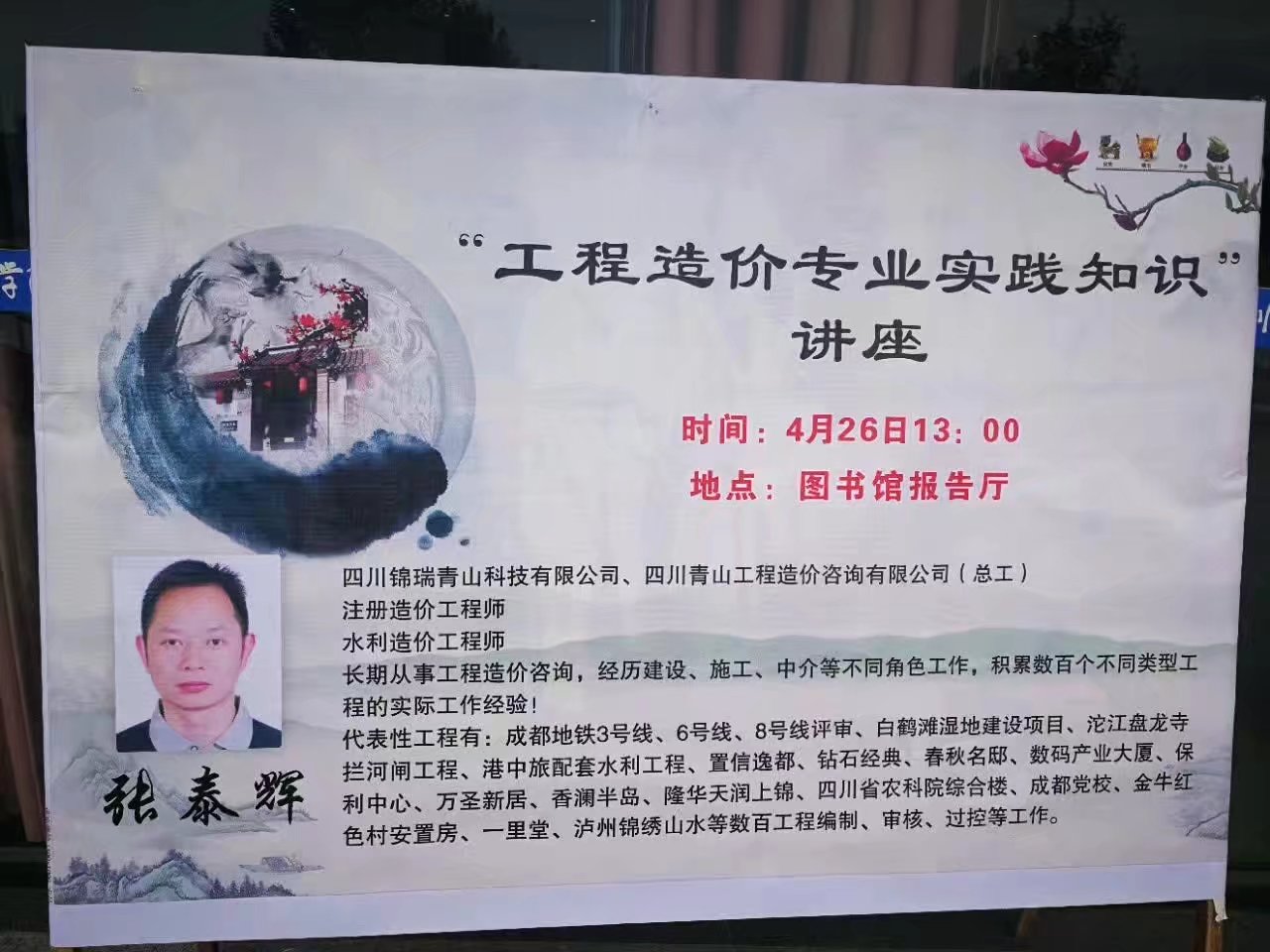 4月26日下午,“校企合作,共赢未来”青山科技公司工程造价专业实践知识公开课在四川水利职业技术学院多功能厅成功举办。公开课由四川锦瑞青山科技有限公司主办,四川青山工程造价咨询事务所有限公司总经理张泰辉作主题演讲,四川水利职业技术学院工会主席张智涌、建筑系书记李学明出席,以及建筑系200余名师生参加了本次公开课。