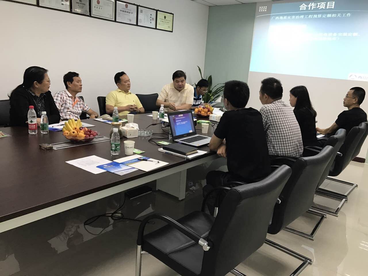 张总首先对来访领导表示热烈欢迎。白总就来访领导所提出的广西地质灾害治理定额编制过程中存在的疑惑,工作中各流程的注意事项等内容与来访领导一行进行了深入的沟通和交流。通过总结与借鉴白总参与四川地质灾害治理工程营改增测算工作的经验建议,双方对广西地质灾害定额编制工作后期定额水平测算方法及要求等交换了相关意见。整个交流过程内容丰富,讨论热烈,会议延续到晚上7点后才结束。