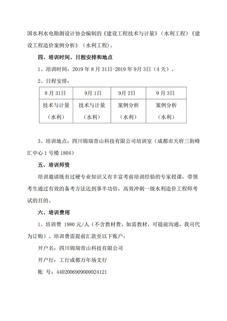 关于举办2019年一级水利造价工程师考前培训班的通知(成都)