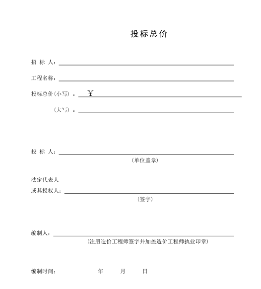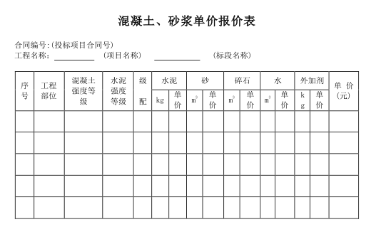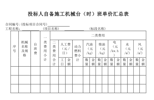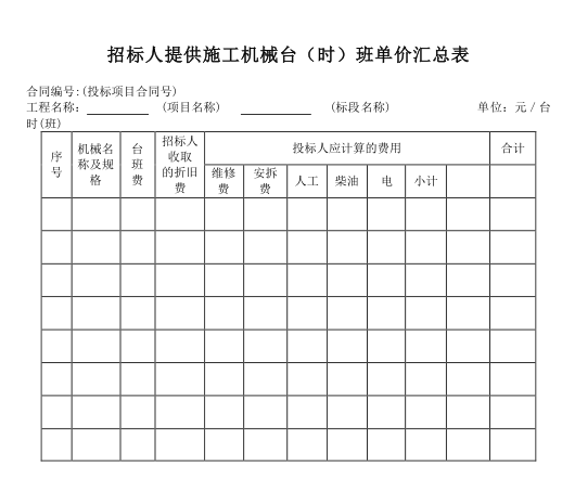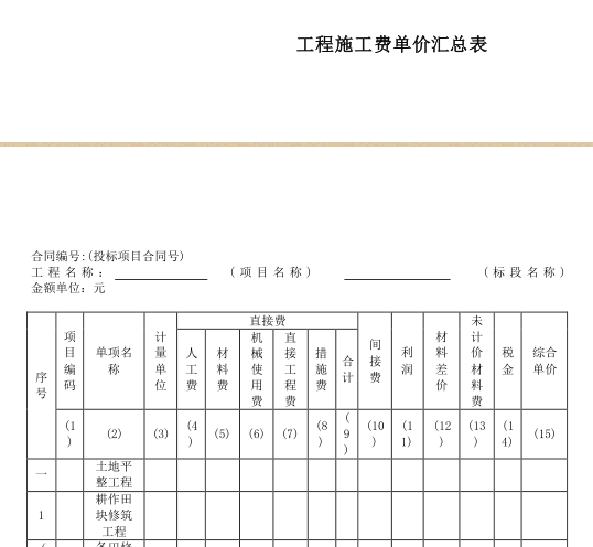 湖北土地整理招投标常用报表式样2017.06