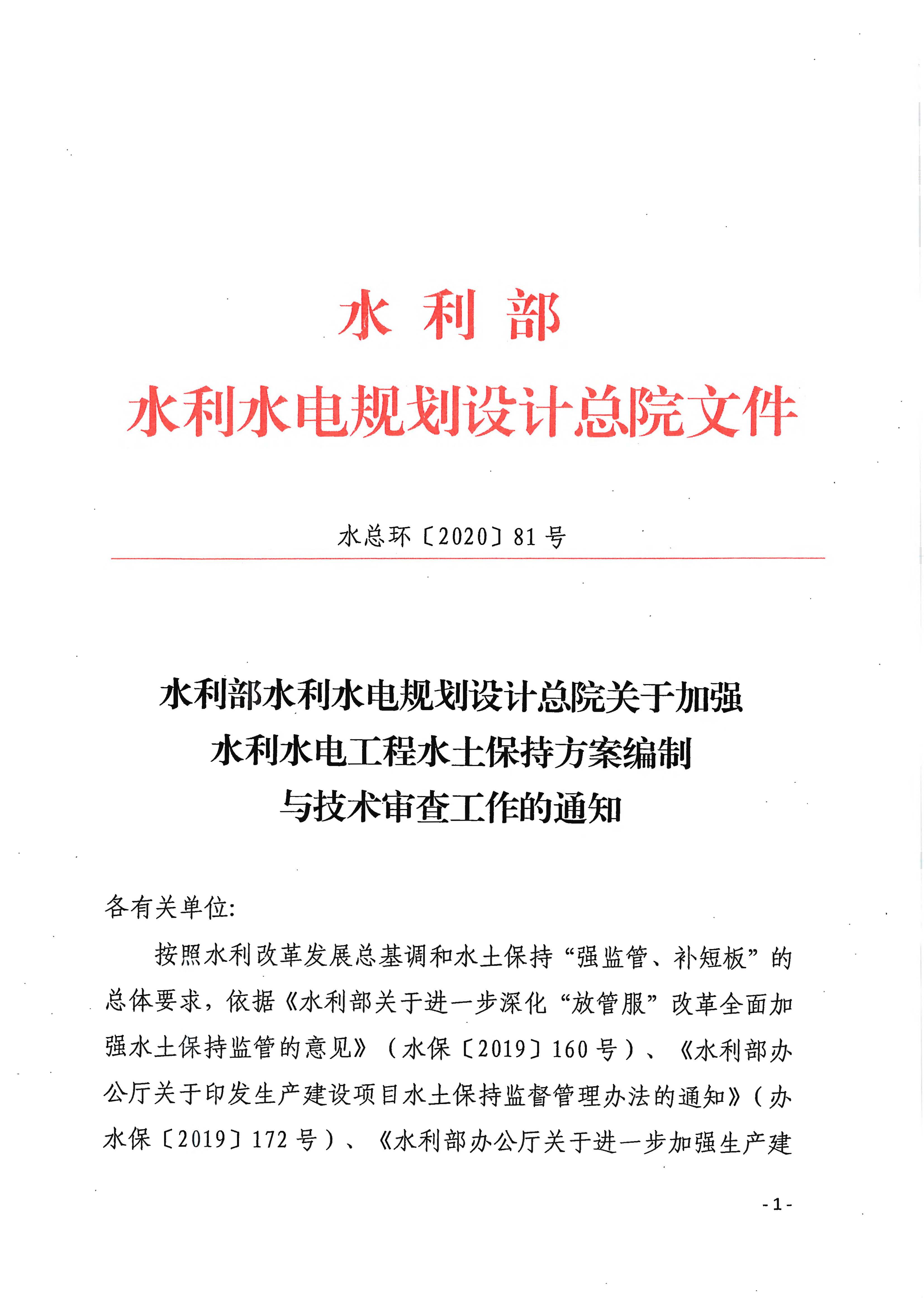 <转>水利部水利水电规划设计总院关于加强水利水电工程水土保持方案编制与技术审查的通知-水总环[2020]81号