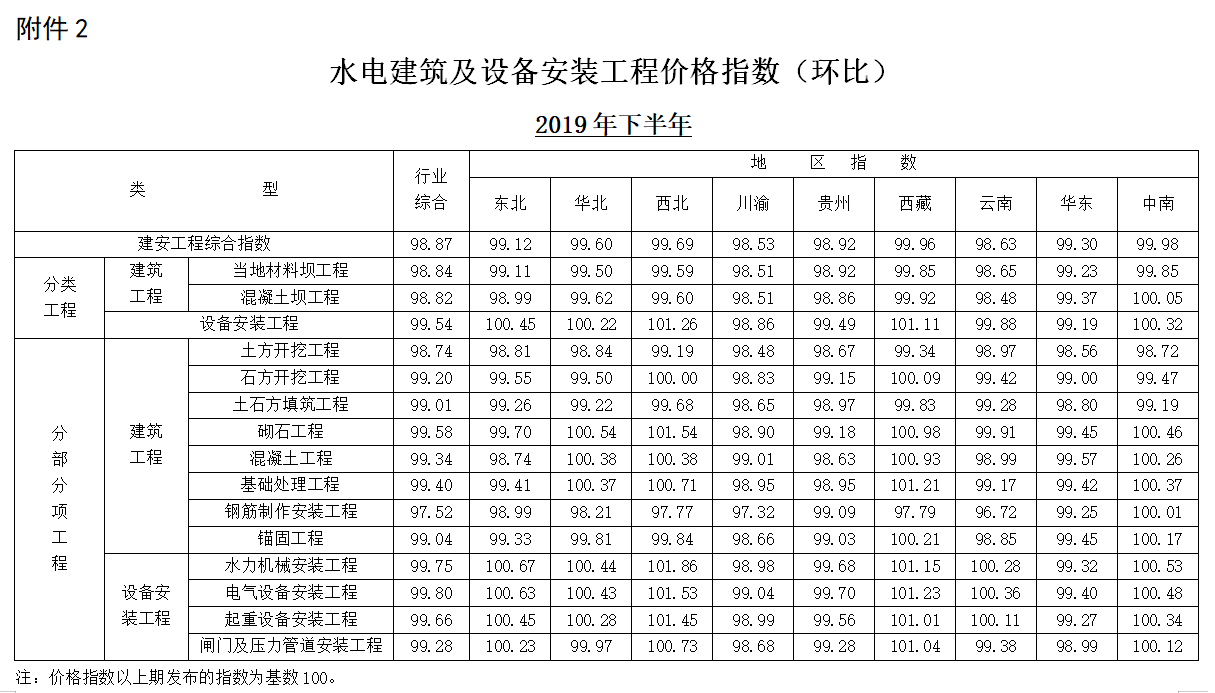 <转>2019年下半年水电建筑及设备安装工程价格指数