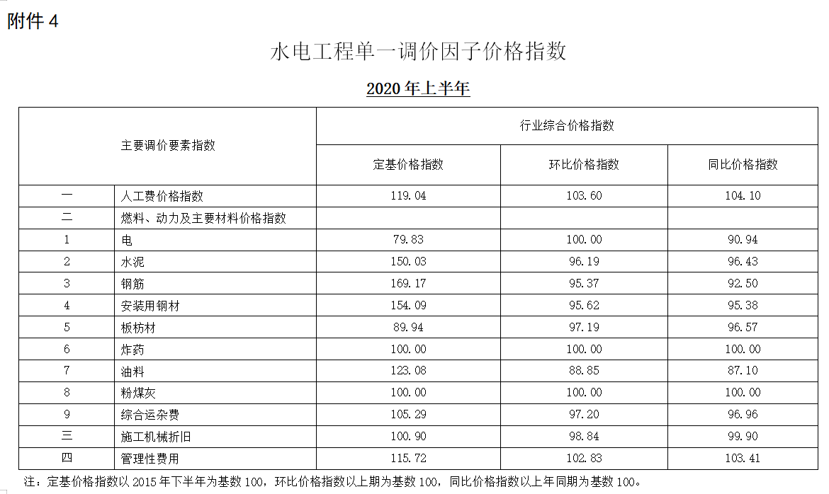 4.水电工程单一调价因子价格指数