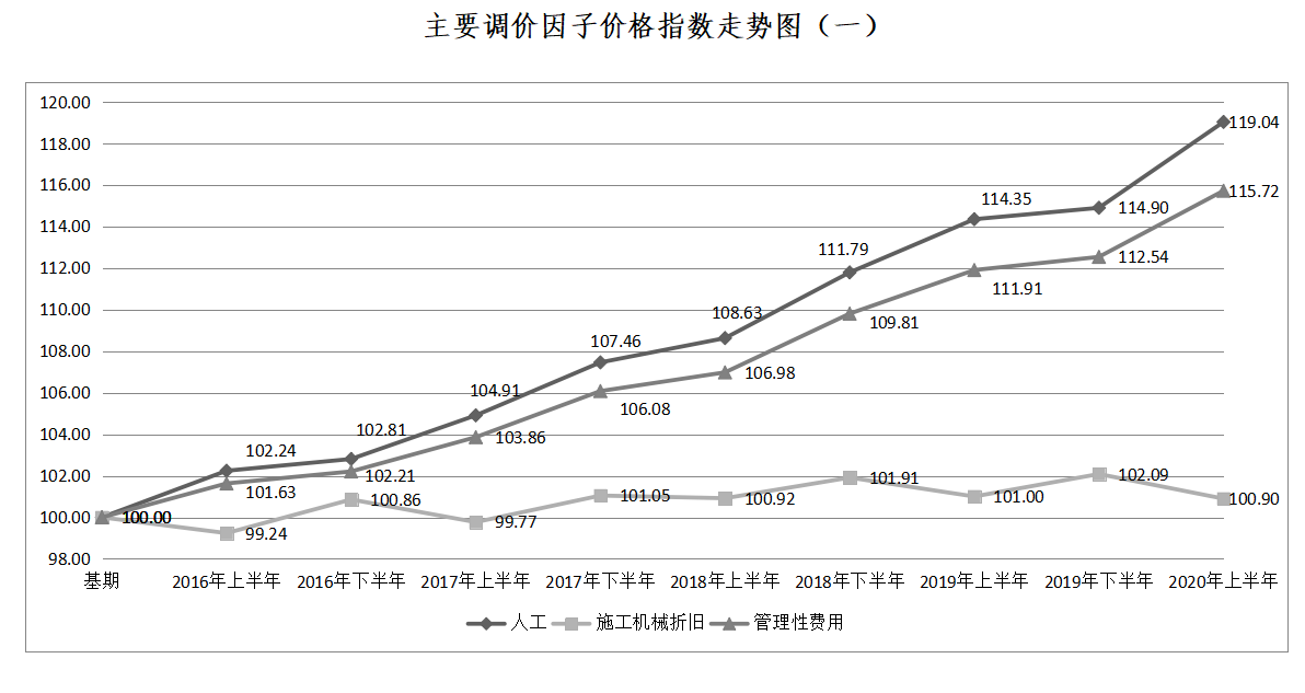 为综合反映水电工程投资随国家政策及市场情况的变化趋势,发挥工程造价管理部门积累价格资料、分析变化趋势、发布价格信息的作用,为政府和业主的水电建设项目投资决策和造价控制管理提供参考数据,经综合测算,现发布2020年上半年水电建筑及设备安装工程价格指数,供有关各方和业内专业人员参考使用。在使用中如有问题,请与我站联系。