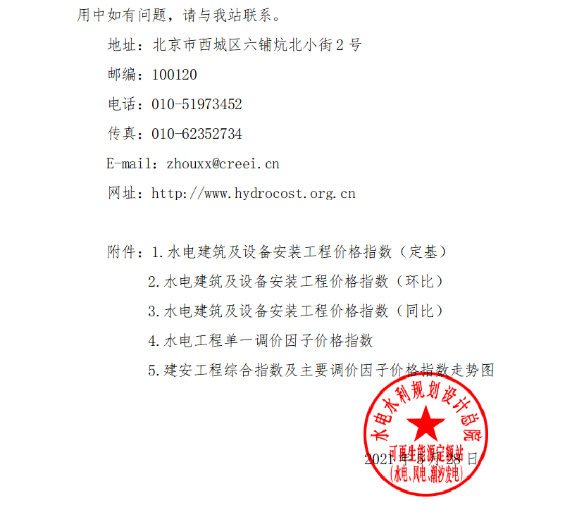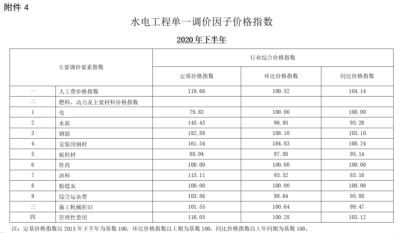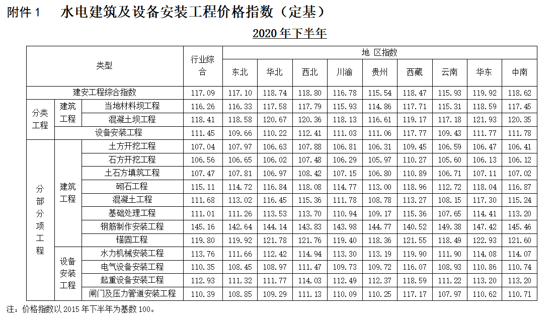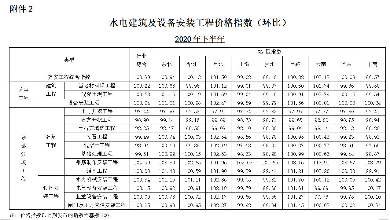 <转>可再生定额[2021]10号 2020年下半年水电建筑及设备安装工程价格指数