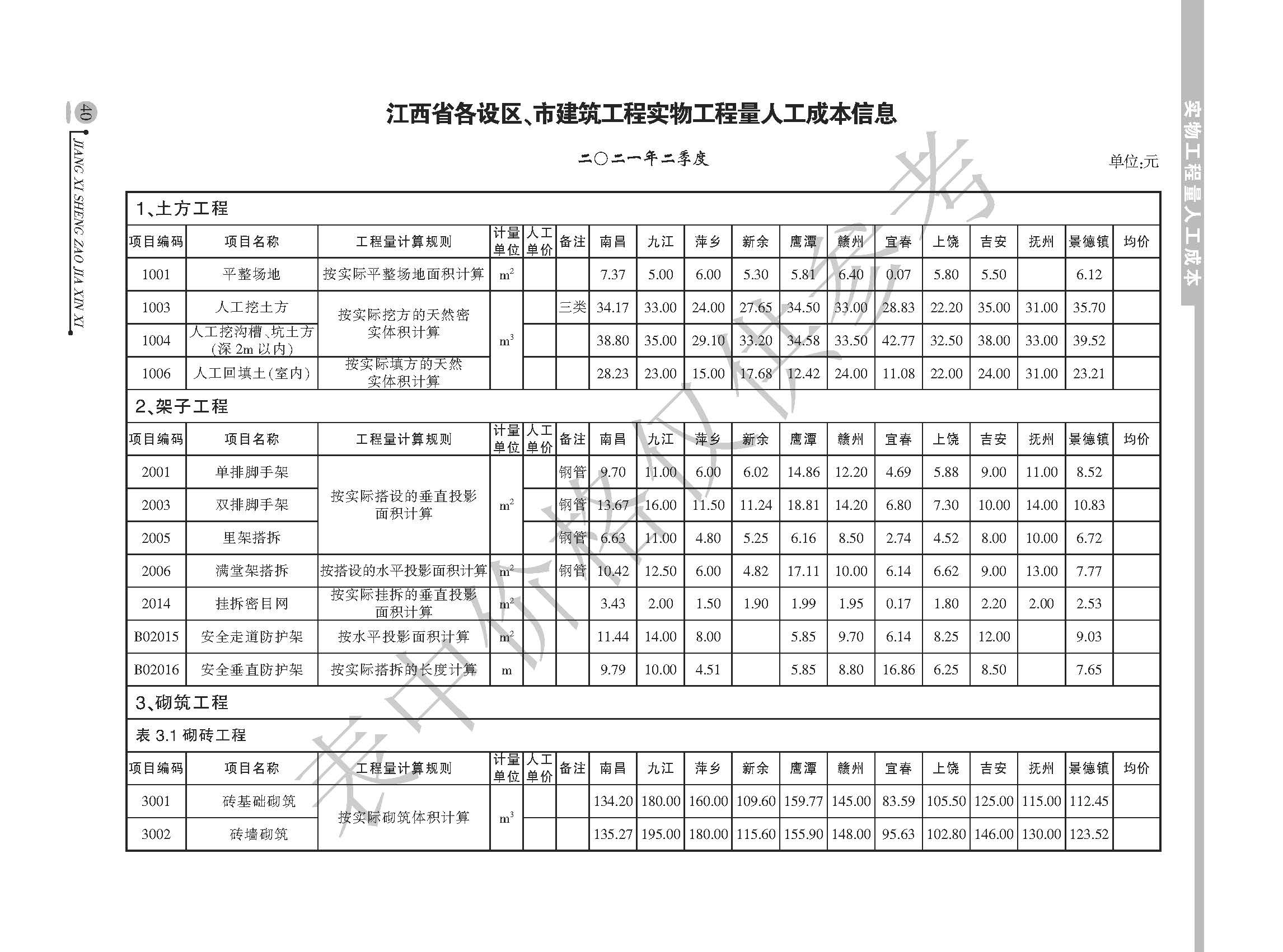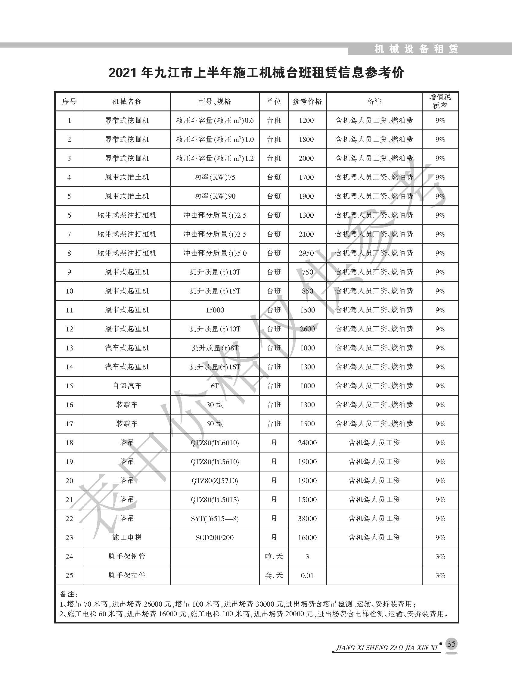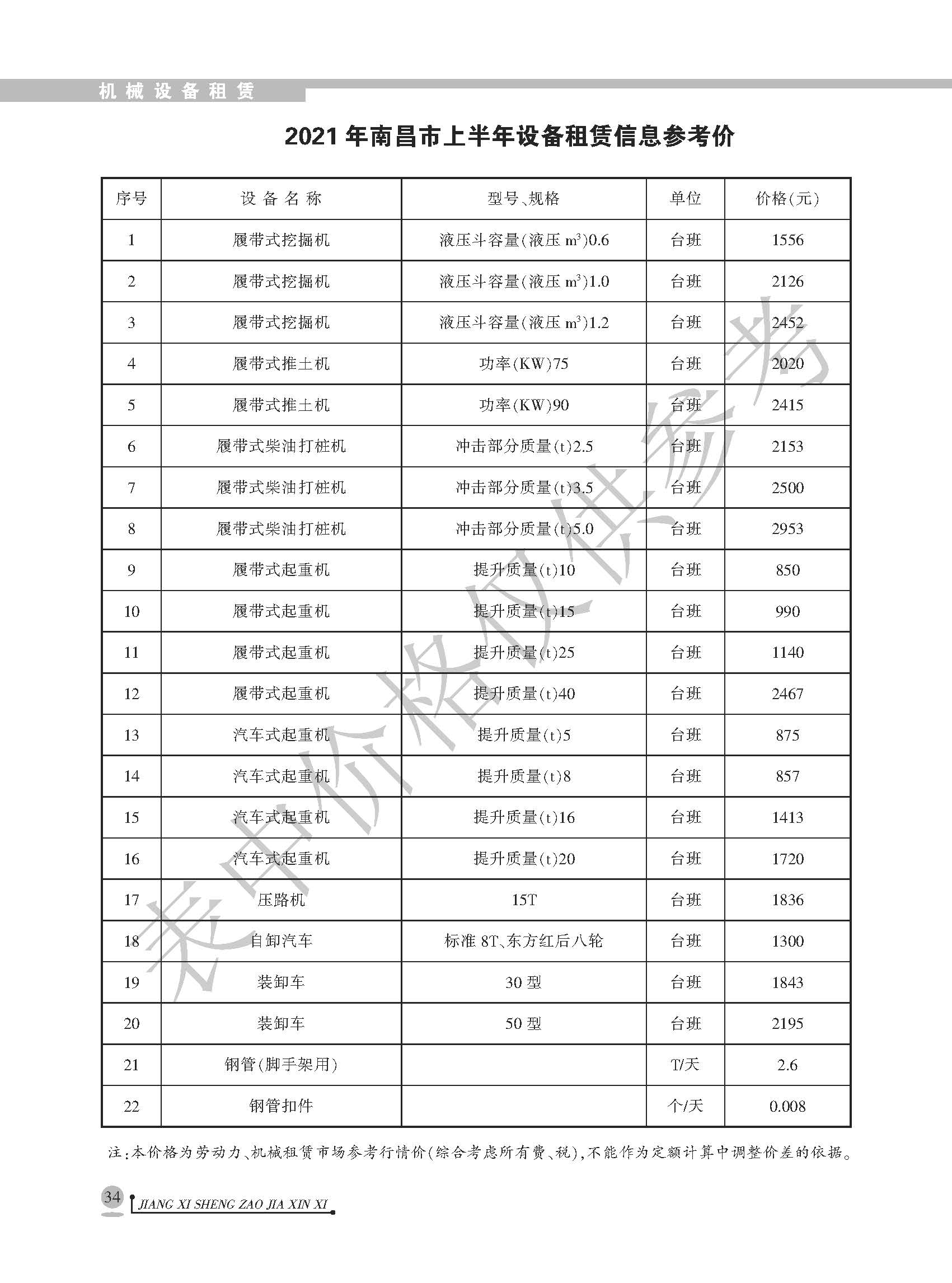 <转>江西省各设区市2021年上半年建筑人工机械设备信息参考价