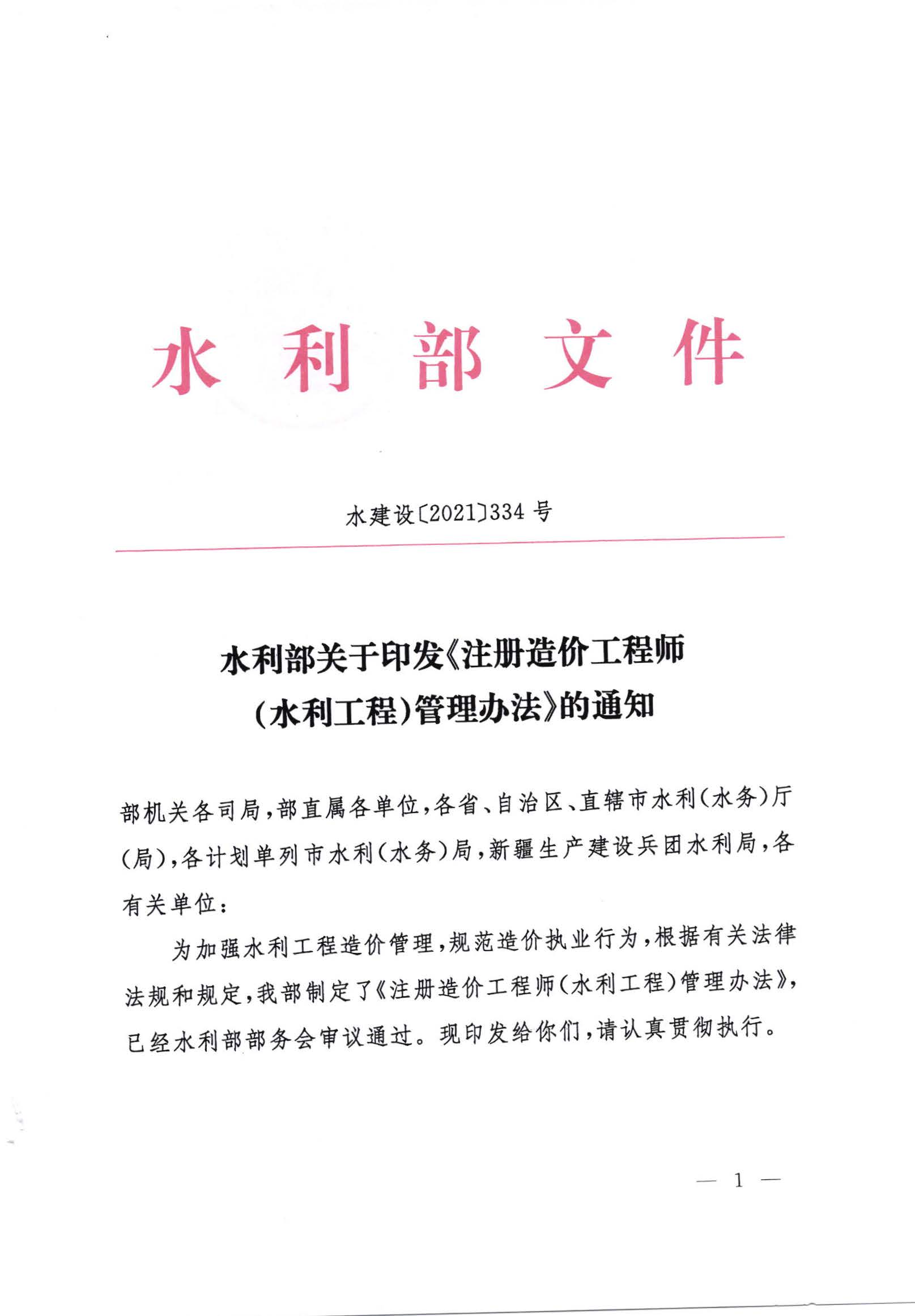 <转>转发水利部印发《注册造价工程师(水利工程)管理办法》的通知-水建设[2021]334号