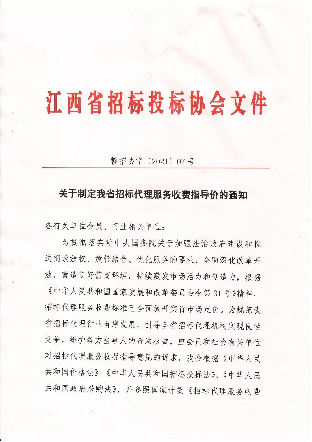 <转>江西省招标代理服务收费指导价格通知(赣招协字[2021]07号)