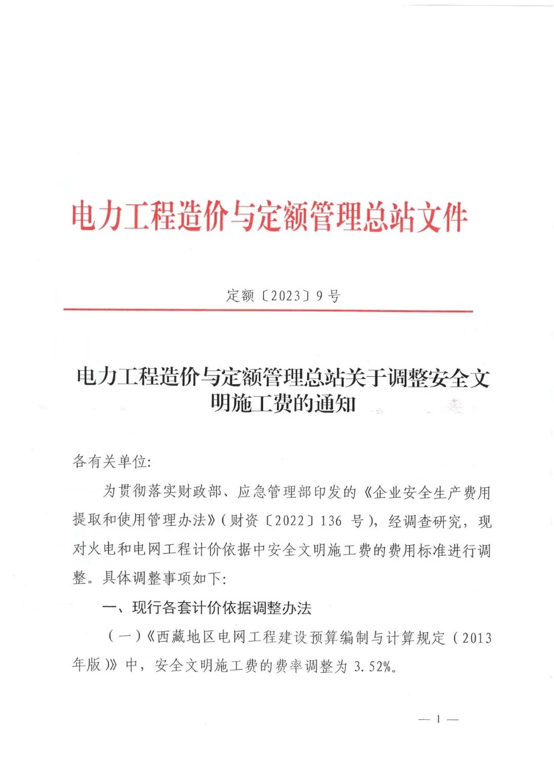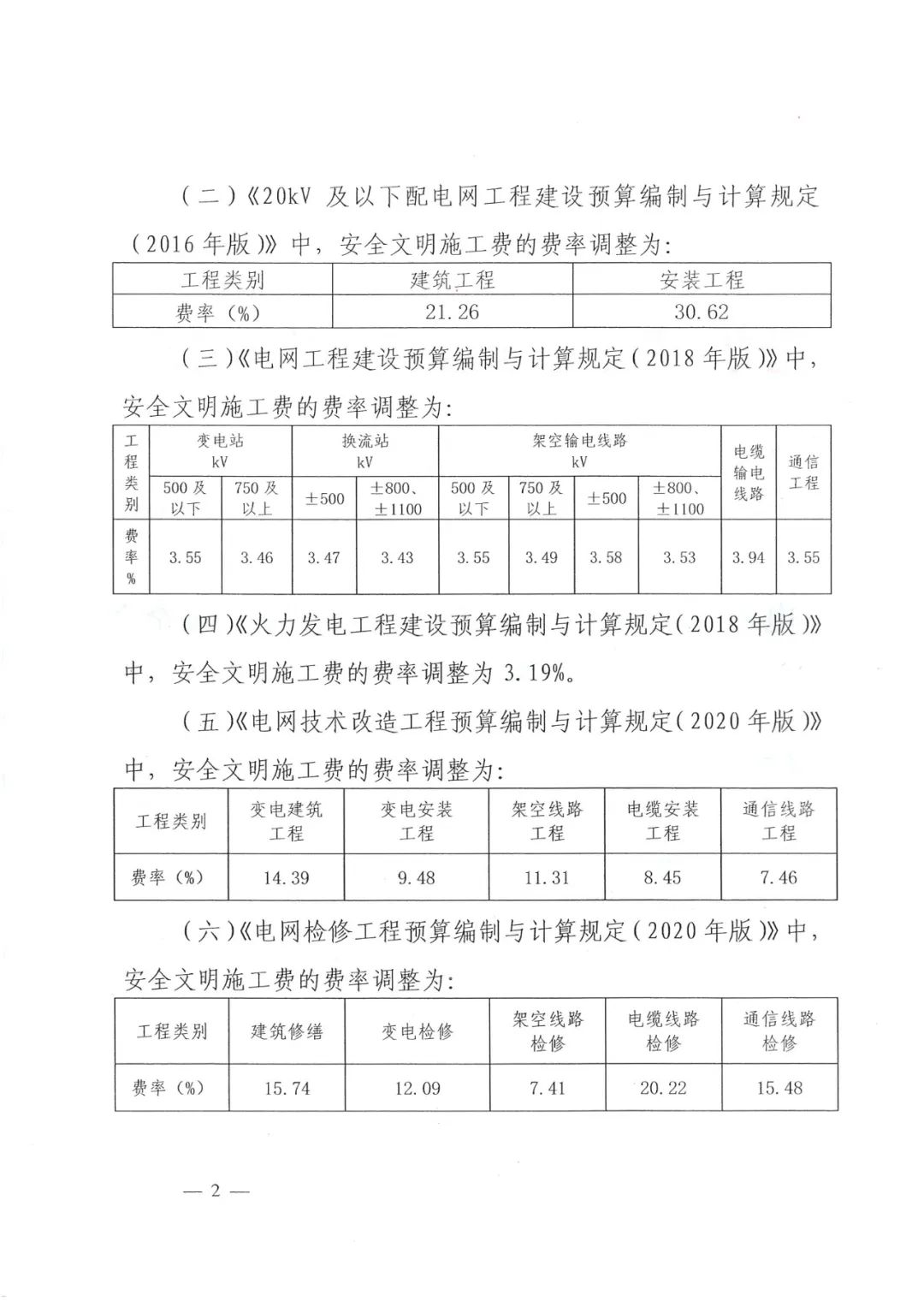 <转>火电和电网工程计价“安全文明施工费”费用标准调整通知