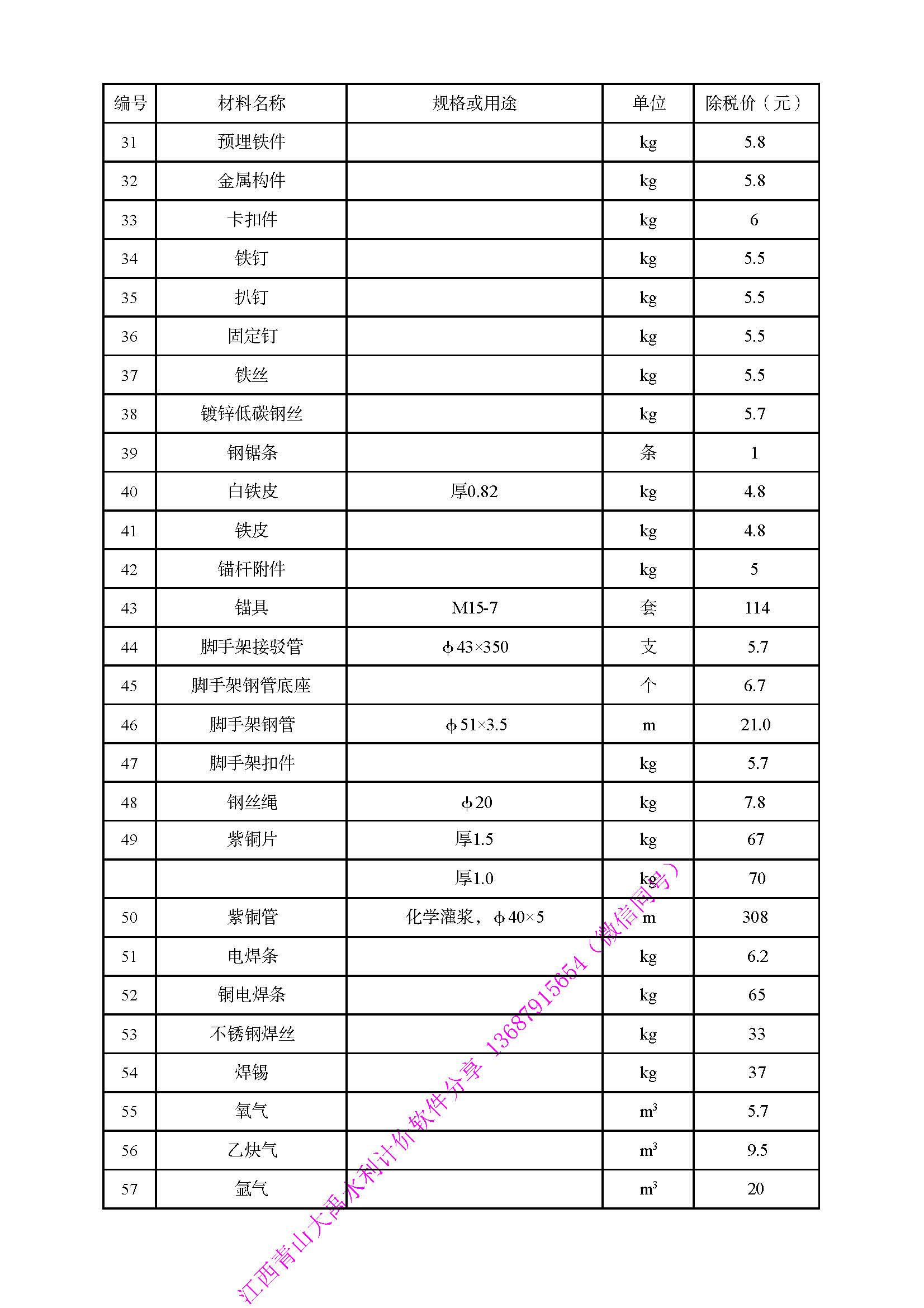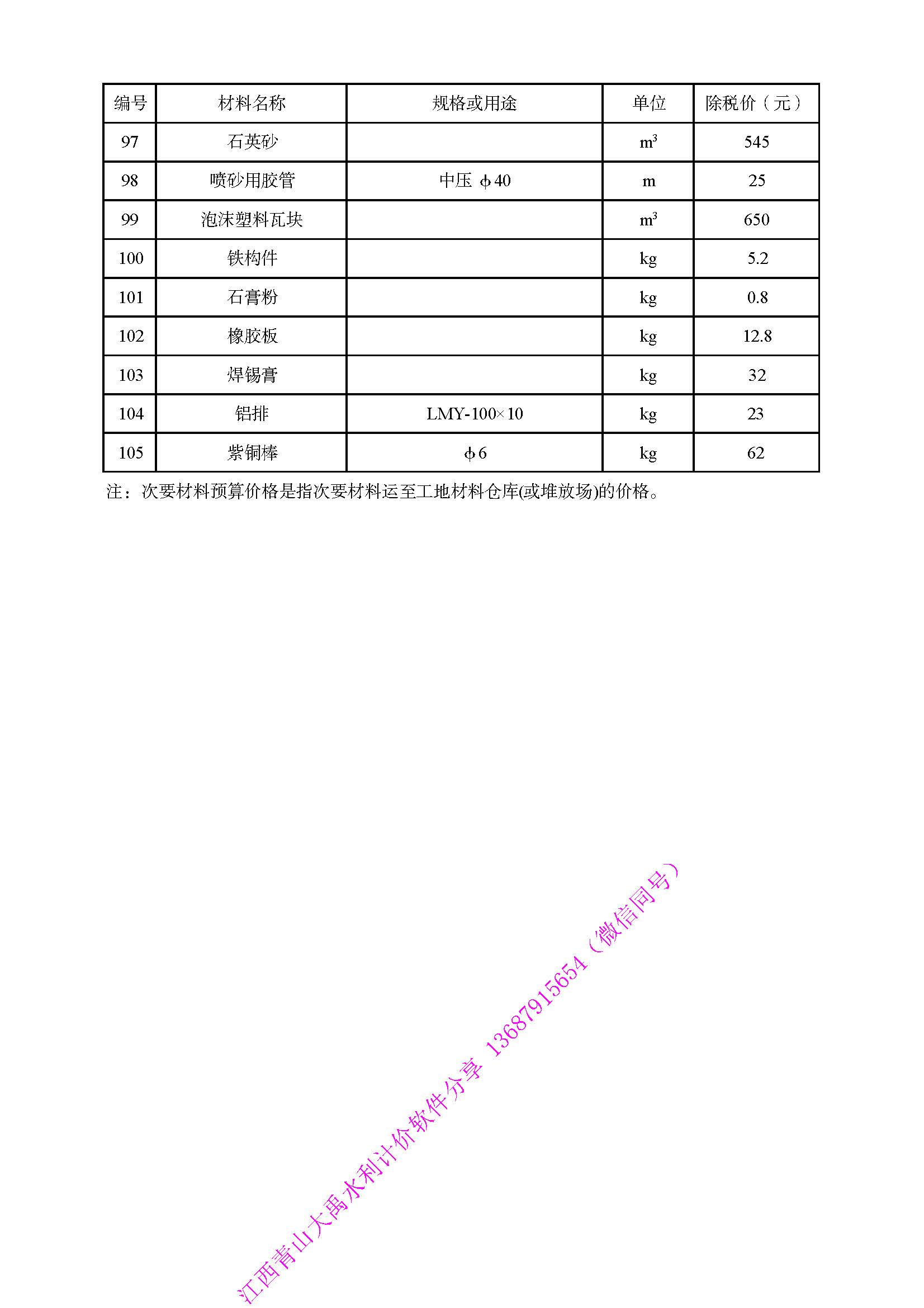 <转>2023年广东省水利水电工程定额次要材料预算指导价格