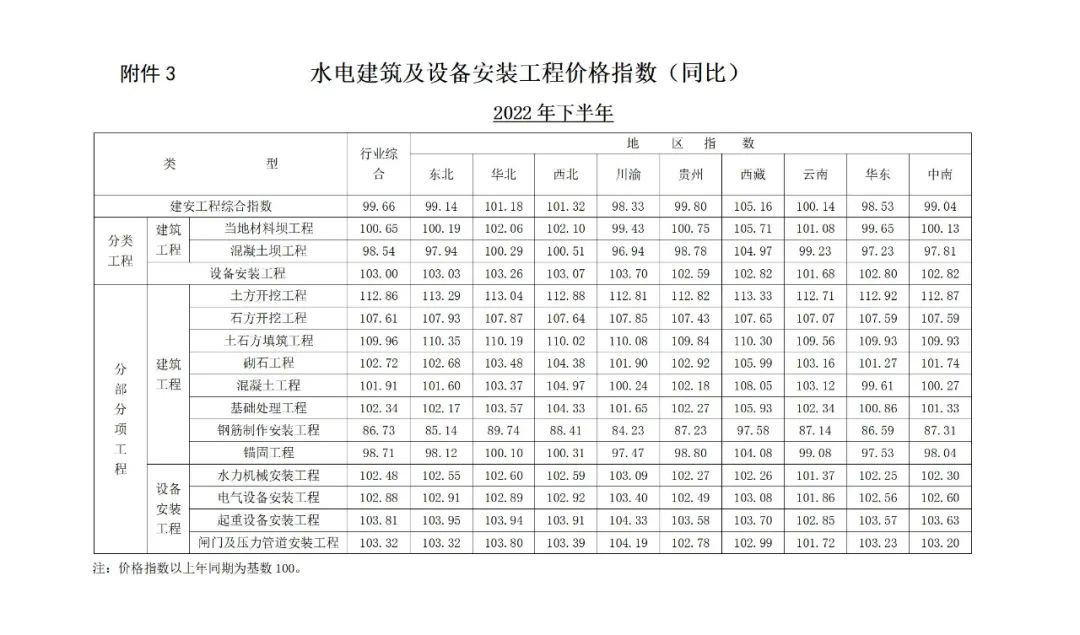 <转>2022年下半年水电建筑及设备安装工程价格指数