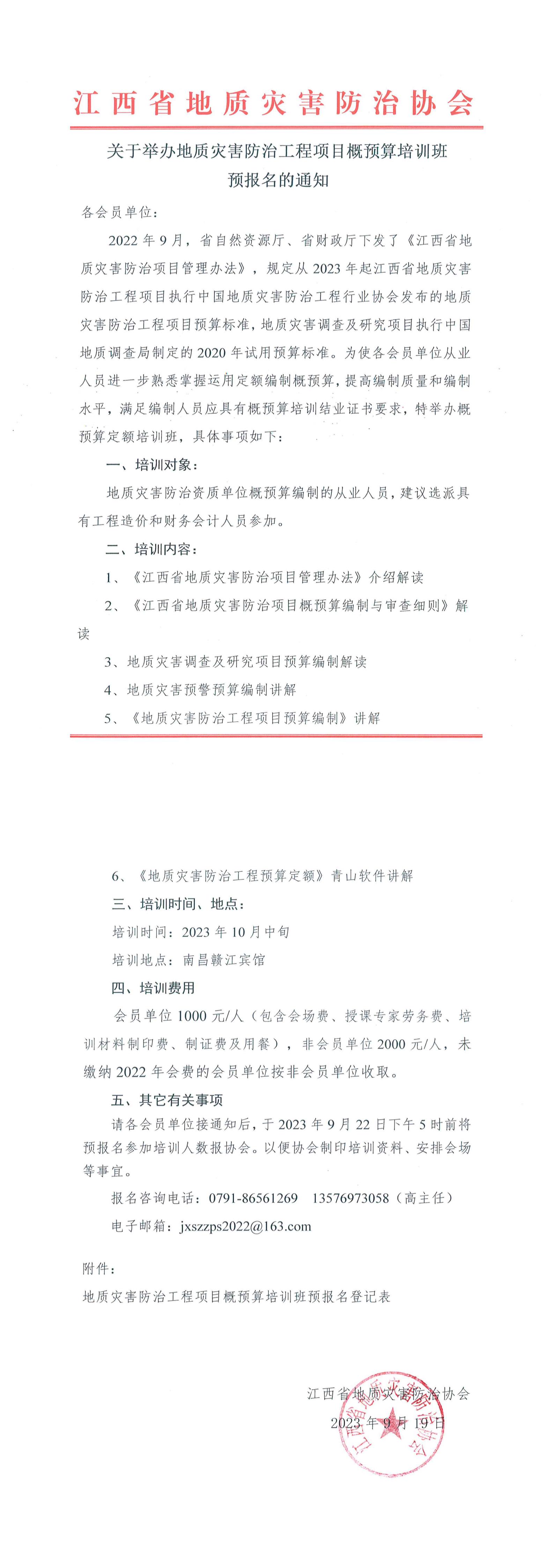 <转>关于举办地质灾害防治工程项目概预算培训班预报名的通知