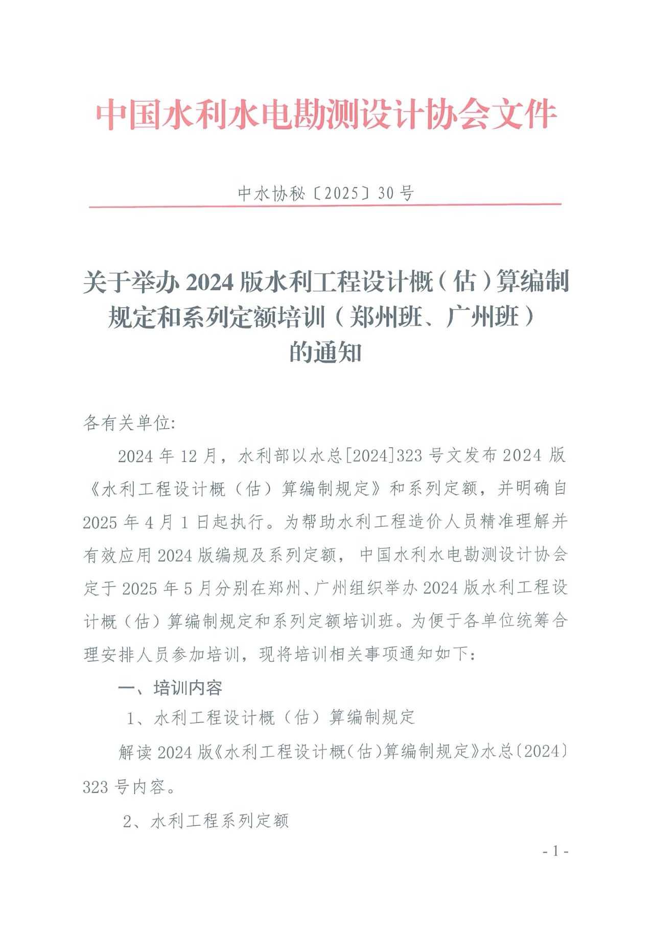 <转> 转发2024版水利工程设计概(估)算编制规定和系列定额培训通知