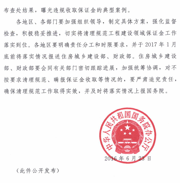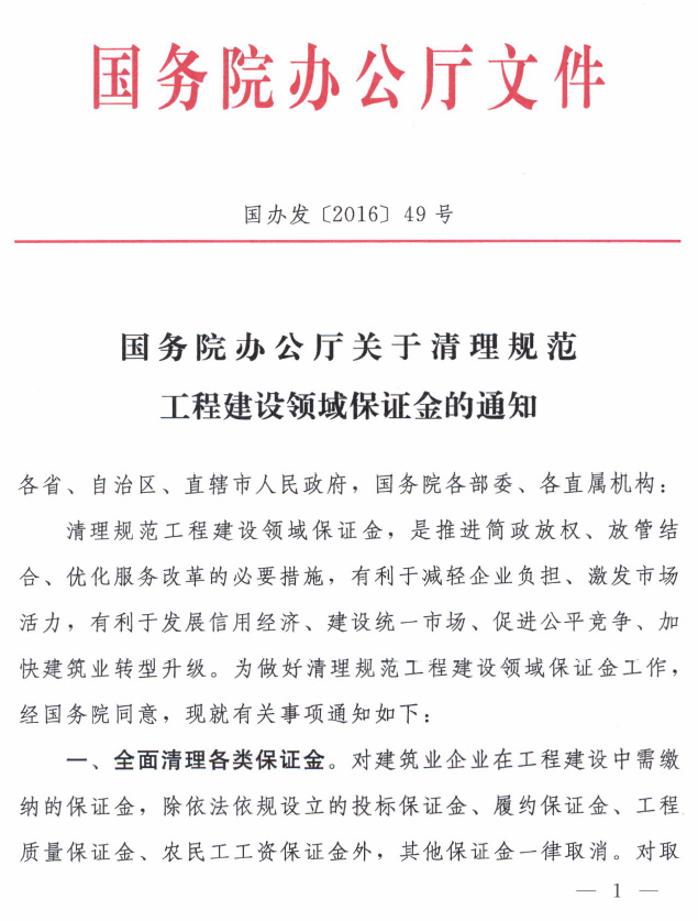 <转>国务院办公厅关于清理规范工程建设领域保证金的通知