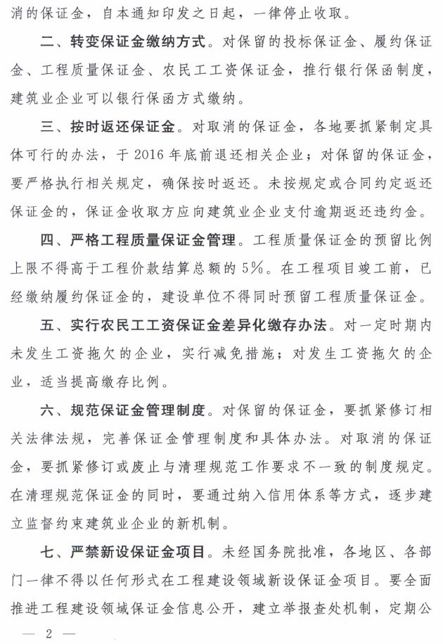 建设领域保证金的通知