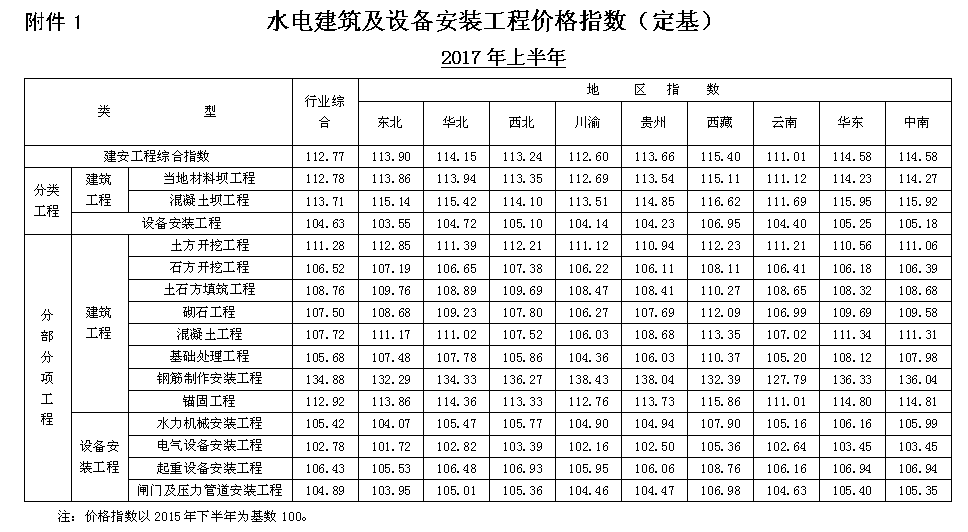 <转>可再生定额[2017]57号 2017年上半年水电建筑及设备安装工程价格指数