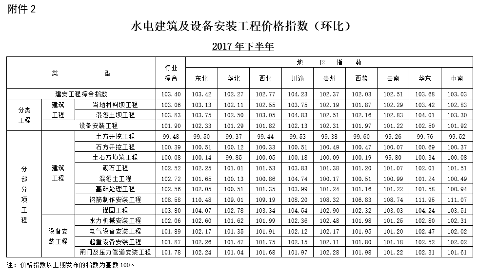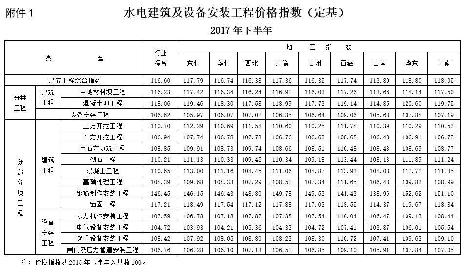 关于发布《水电建筑及设备安装工程价格指数(2017年下半年)》的通知
