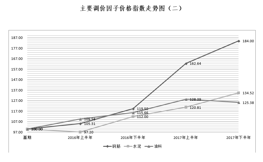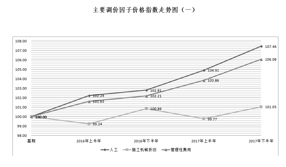 为综合反映水电工程投资随国家政策及市场情况的变化趋势,发挥工程造价管理部门积累价格资料、分析变化趋势、发布价格信息的作用,为政府和业主的水电建设项目投资决策和造价控制管理提供参考数据,经综合测算,现发布2017年下半年水电建筑及设备安装工程价格指数,供有关各方和业内专业人员参考使用。在使用中如有问题,请与我站联系。