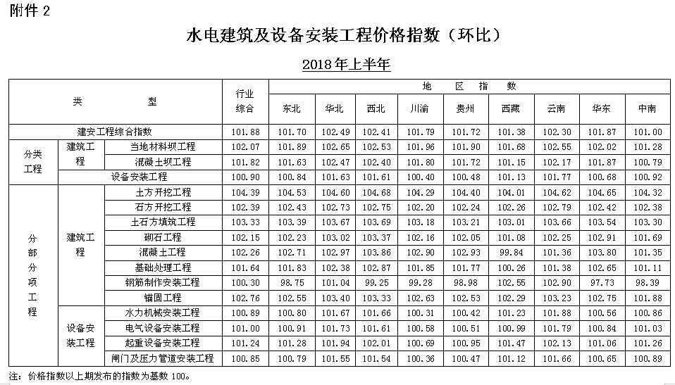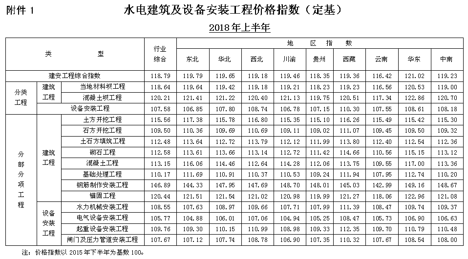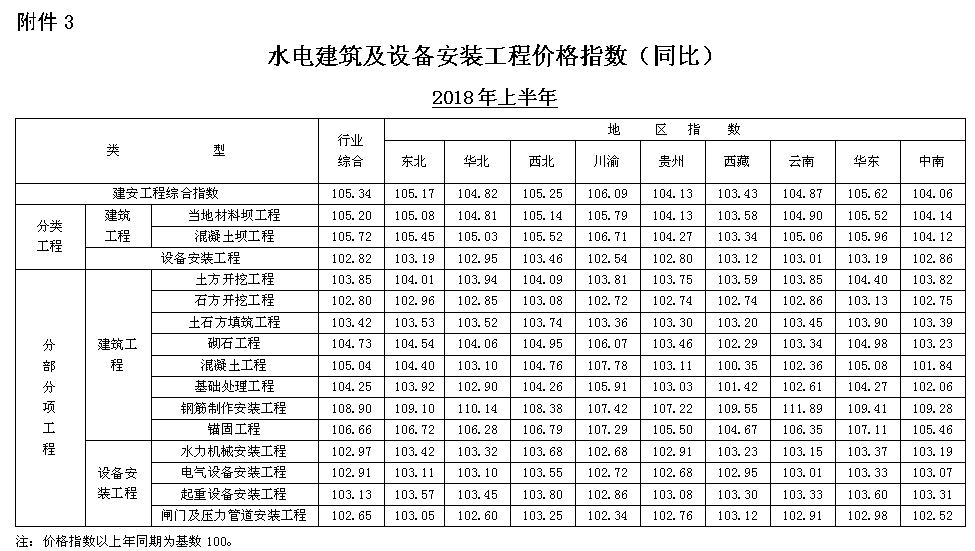 <转>水电建筑及设备安装工程价格指数(2018年上半年)