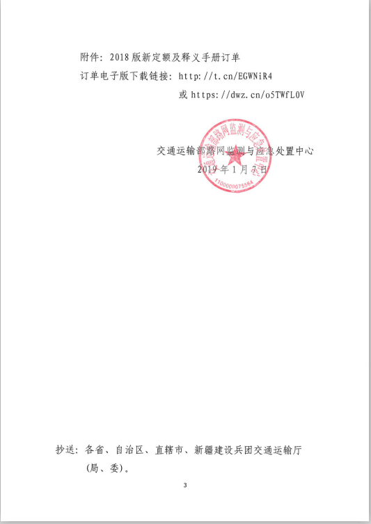 上述标准的管理权和解释权归交通运输部,日常解释和管理工作由主编单位交通运输部路网监测与应急处置中心负责。请各有关单位注意在实践中总结经验,及时将发现的问题和修改建议函告交通运输部路网监测与应急处置中心(地址:北京市朝阳区安定路5号院8号楼外运大厦21层,邮政编码:100029)。