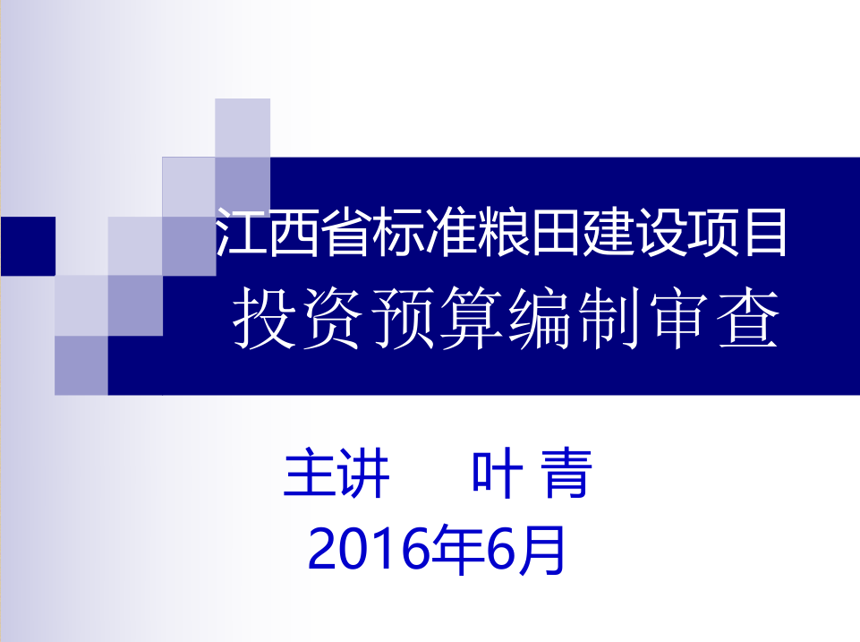 江西省土地整理(高标准粮田)项目投资预算编制审查要点讲义