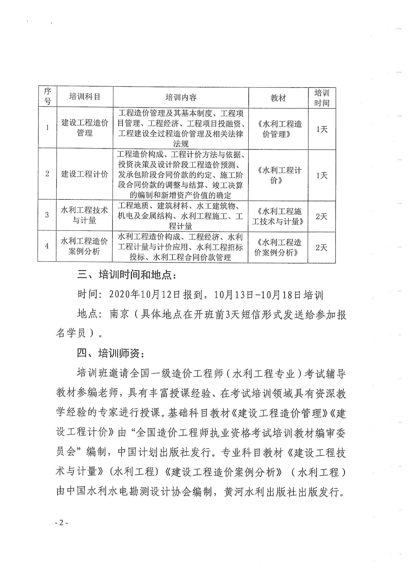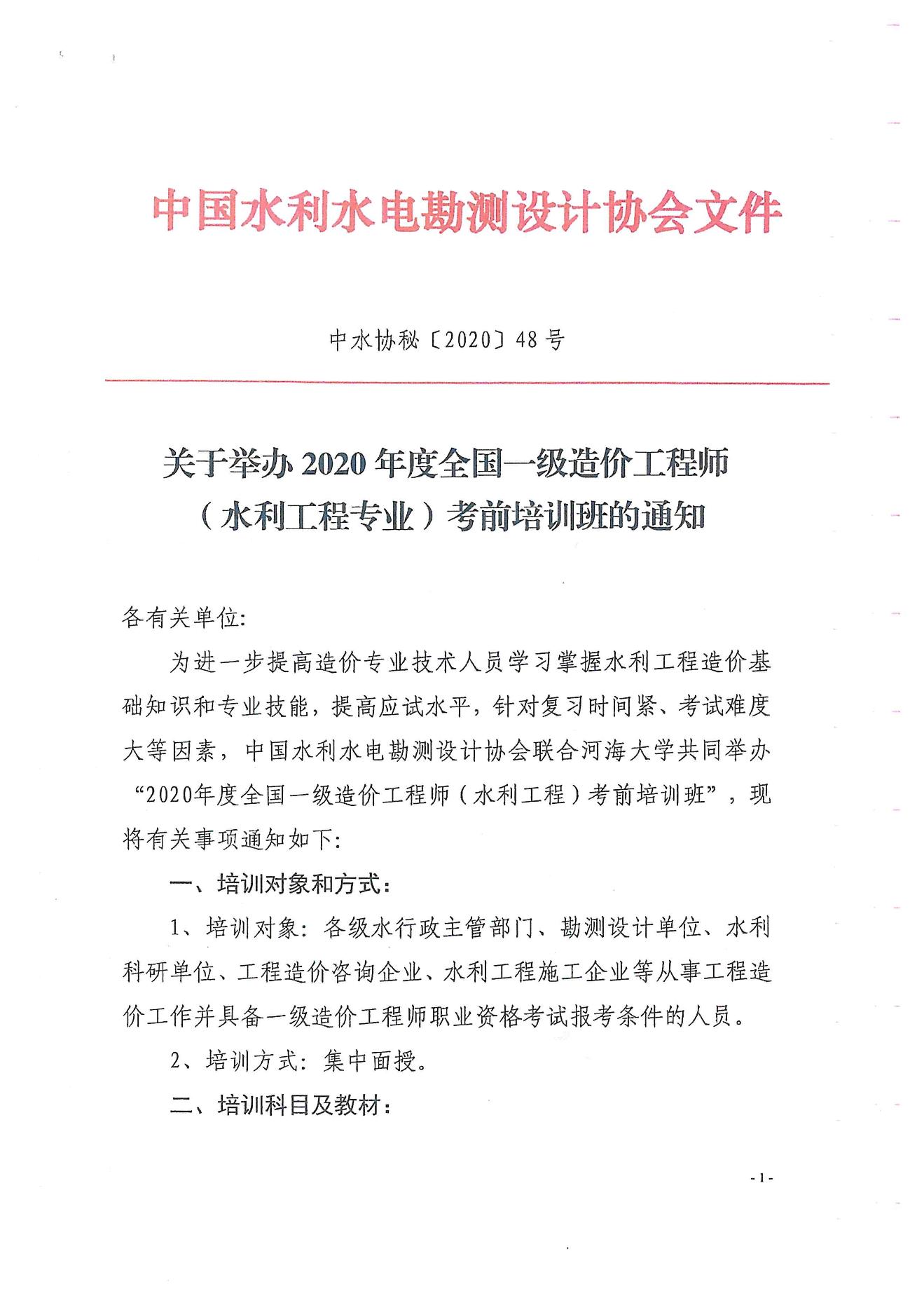 <转>2020年度全国一级造价工程师(水利工程专业)考前培训班的通知