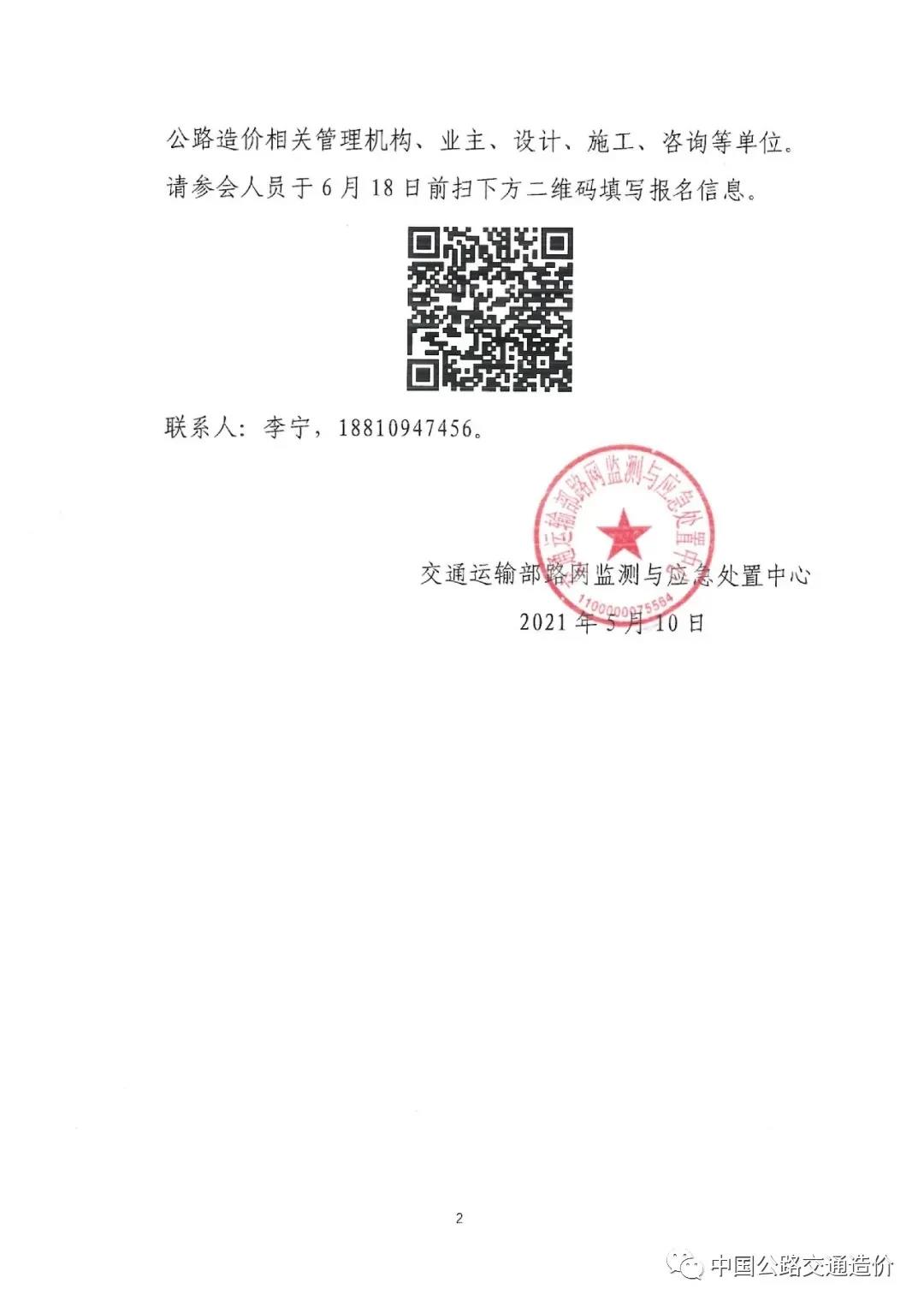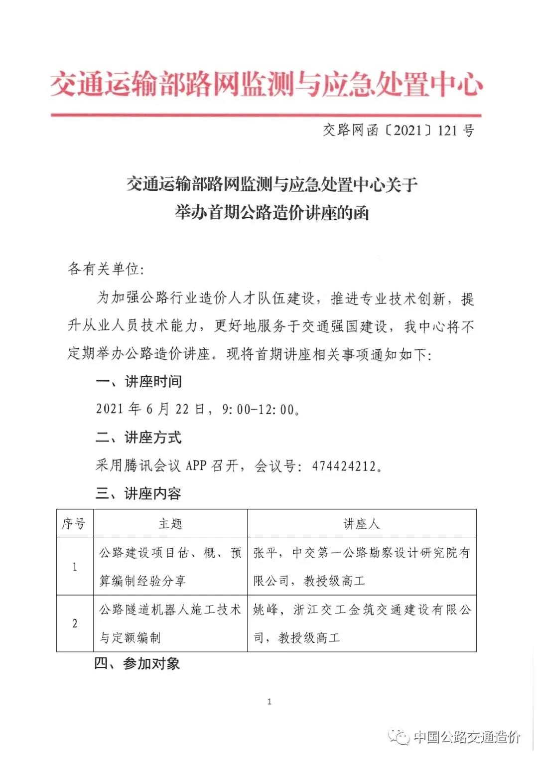 <转>交路网函[2021]121号 6月22日交通运输部路网中心举办公路工程造价免费公益讲座