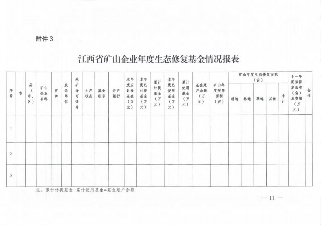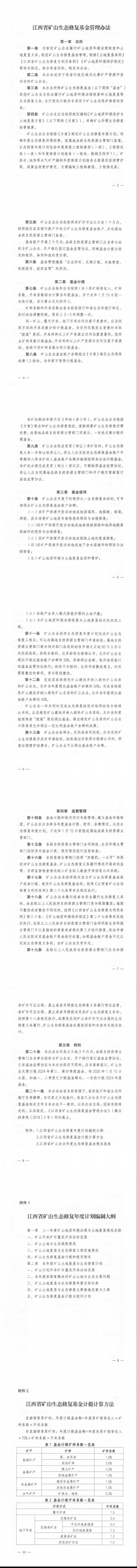 为进一步加强矿山生态修复监管,规范矿山生态修复基金计提、使用程序,优化营商环境,省自然资源厅、省财政厅、省生态环境厅对《江西省矿山生态修复基金管理办法》进行了修订完善。现予印发,请遵照执行。 附件:江西省矿山生态修复基金管理办法.pdf