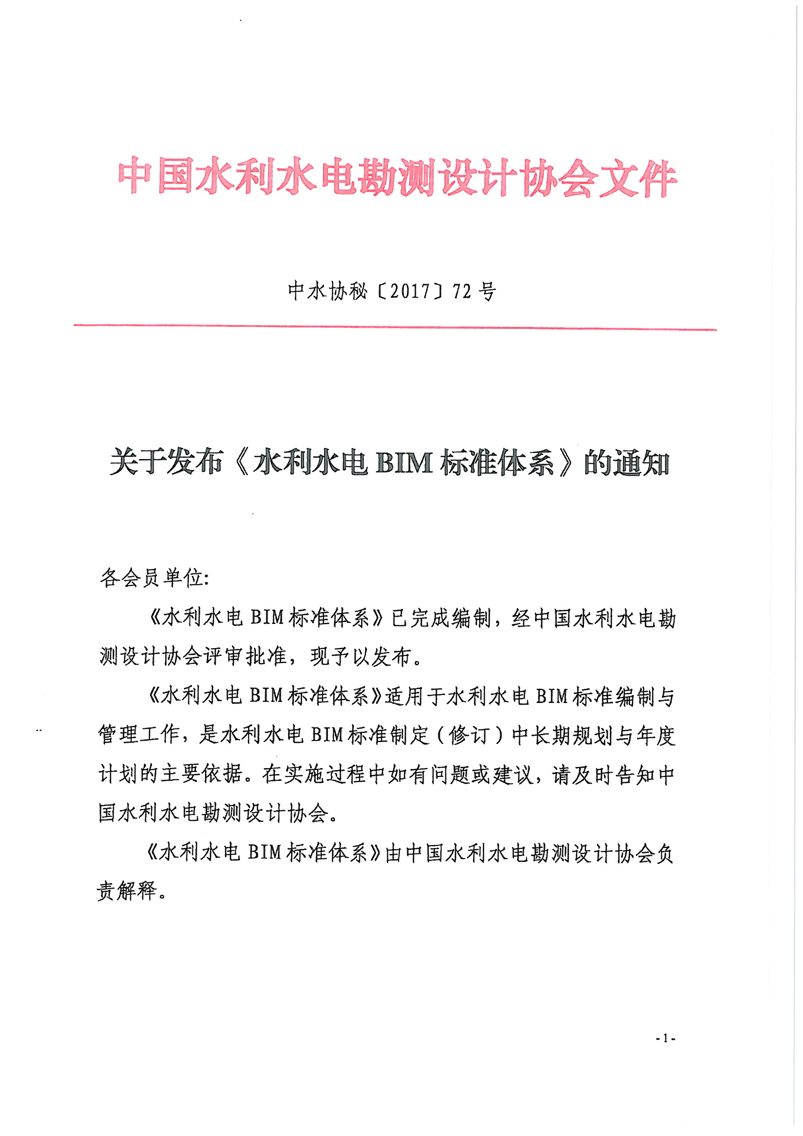 <转>中水协秘[2017]72号 关于发布《水利水电BIM标准体系》的通知