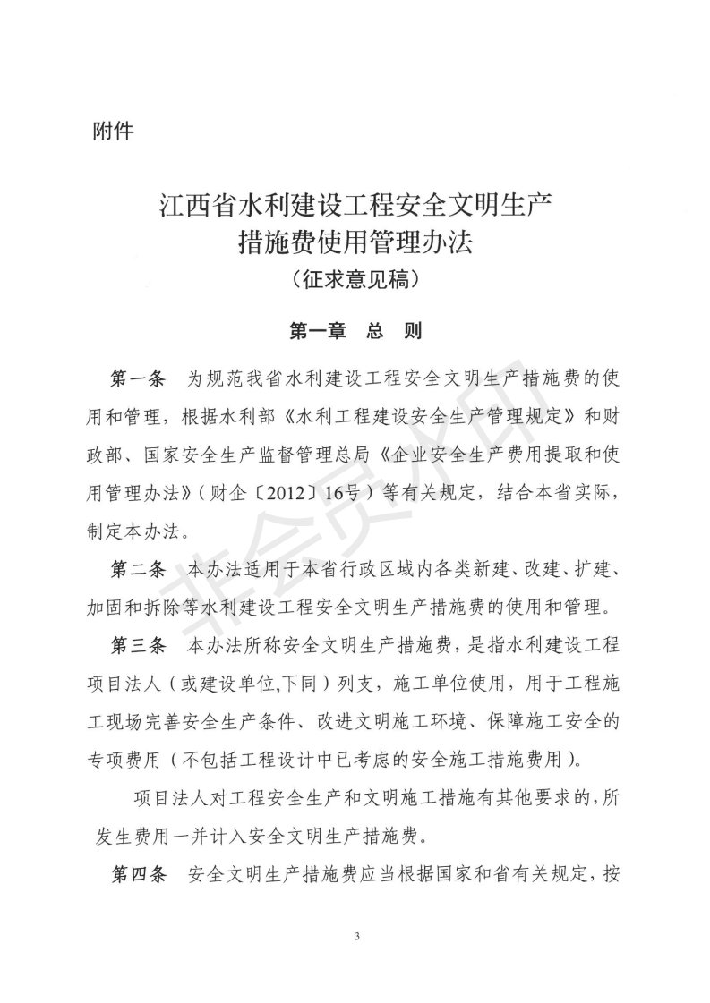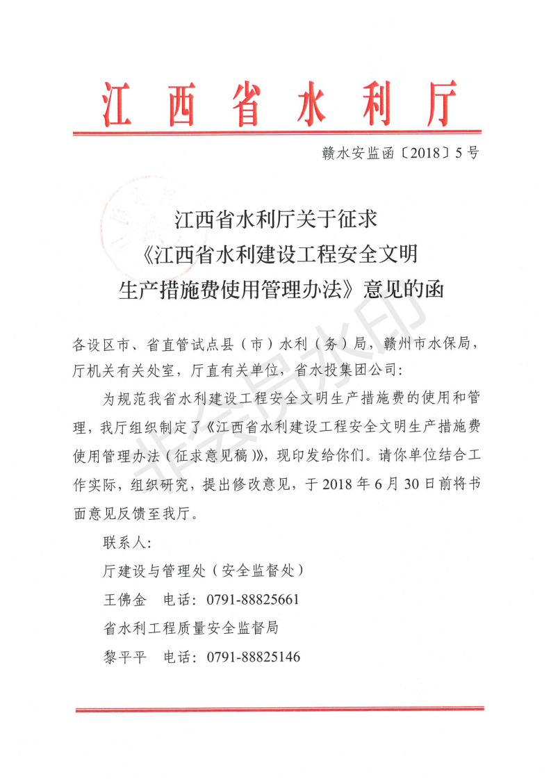 <转>赣水安监函[2018]5号 关于征求《江西省水利建设工程安全文明生产措施费使用管理办法》意见的函