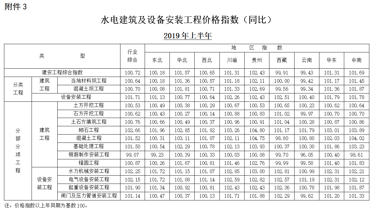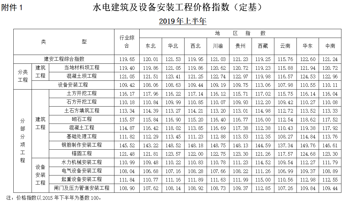 <转>可再生定额[2019]47号 水电建筑及设备安装工程2019年上半年价格指数