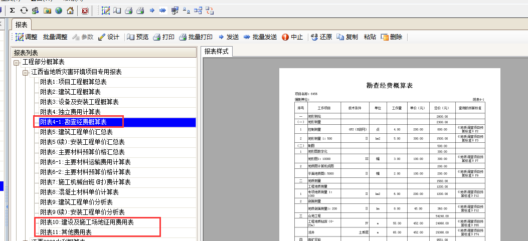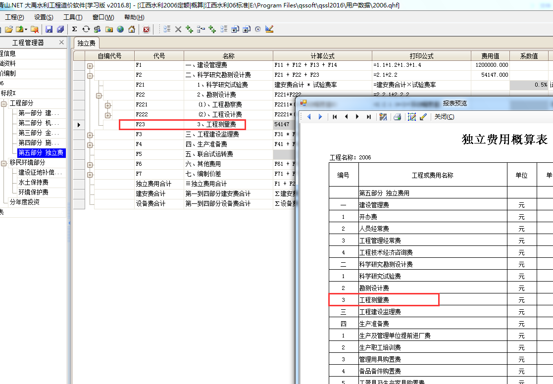 预算标准》的,同时【场地征用费】、【后期监测费】根据水环院用户的要求,都是可以列项计取的,同时软件还配有相应的报表。