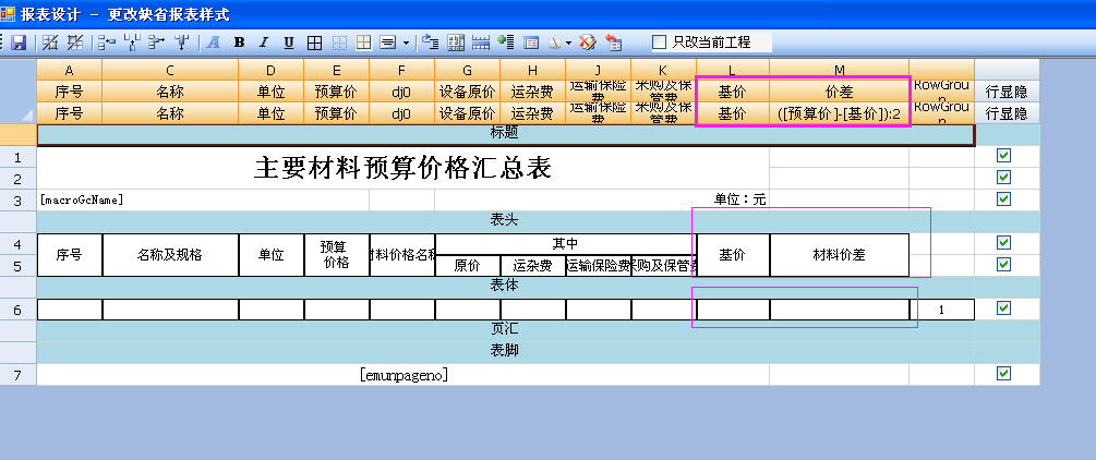 青山水利NET主要材料预算价汇总表如何显示价差