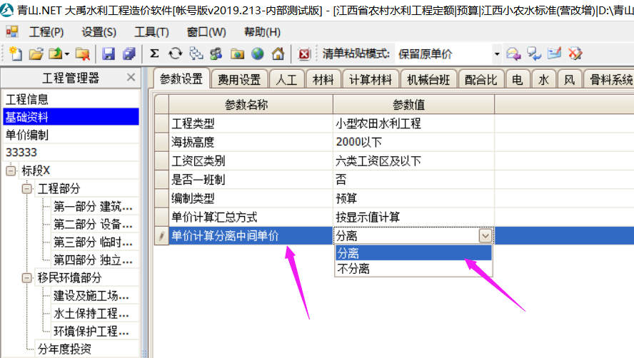 单价分析表中【中间单价:砂浆或者混凝土搅拌和运输】单独显示操作方法