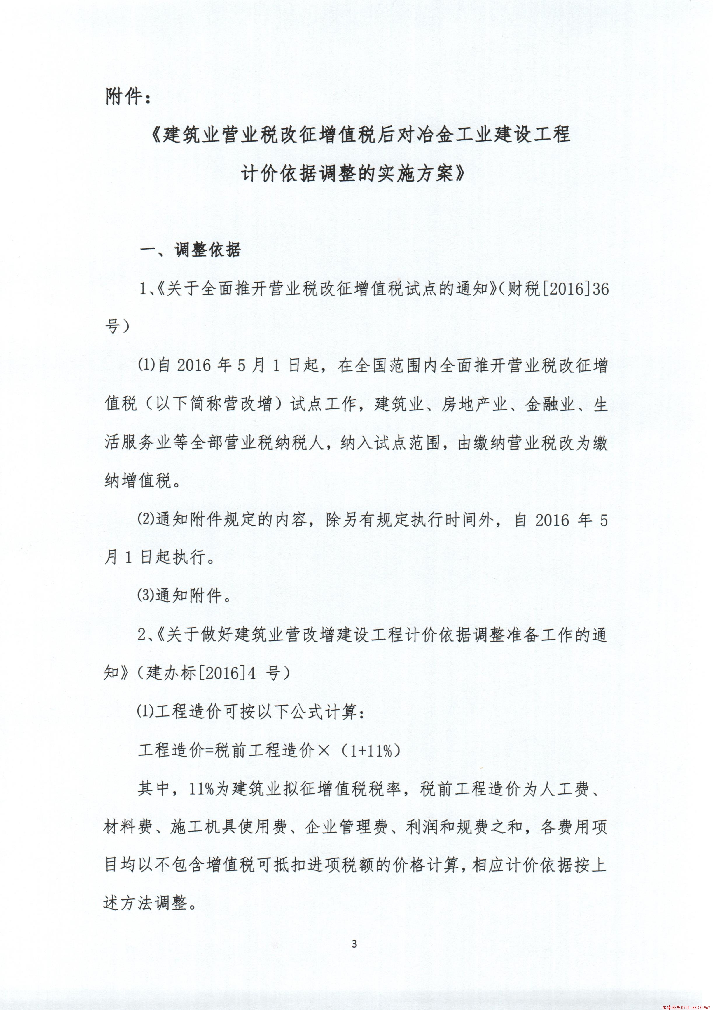 <转>冶金定(2016)9号 冶金工业建设工程营业税改征增值税计价依据调整的实施方案