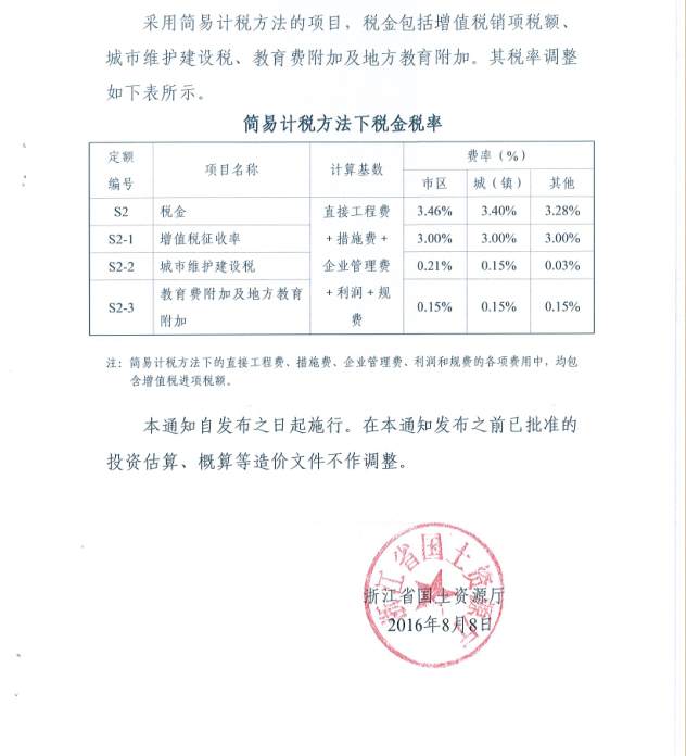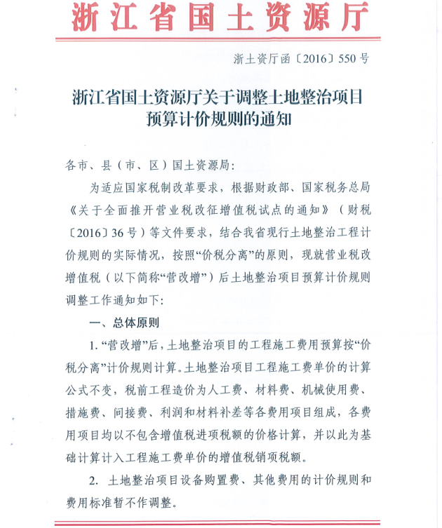 <转>浙土资厅函[2016]550号 关于调整浙江省土地整治项目预算计价规则的通知