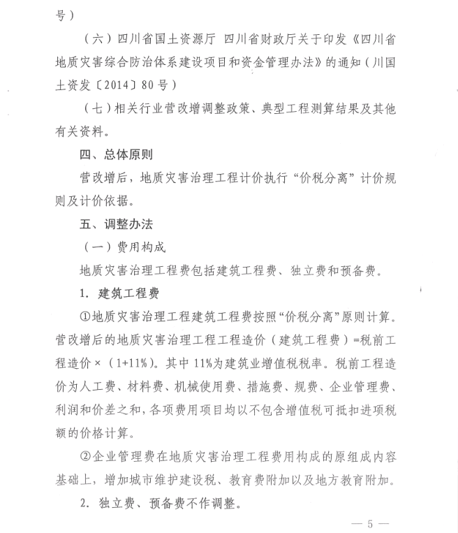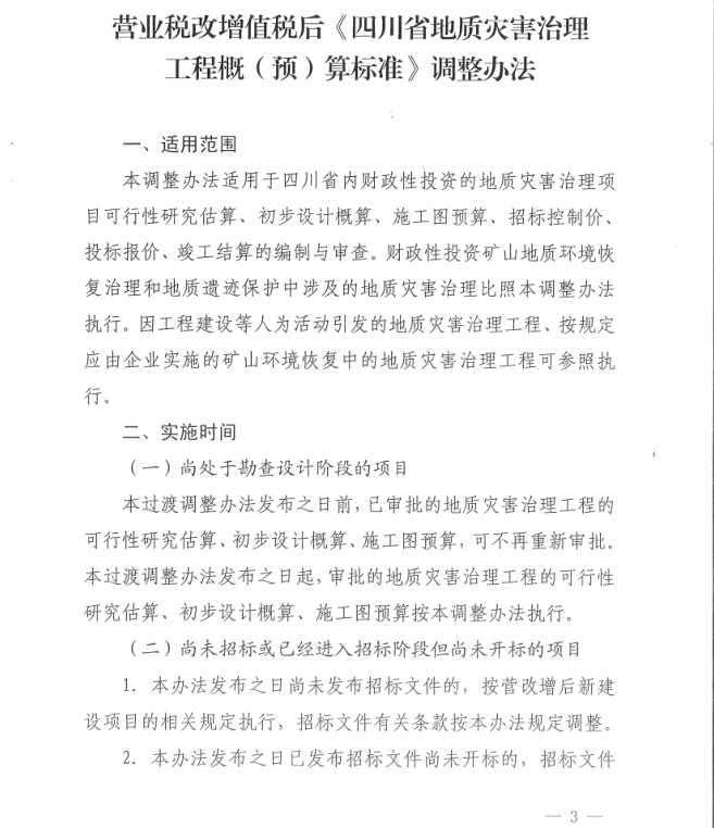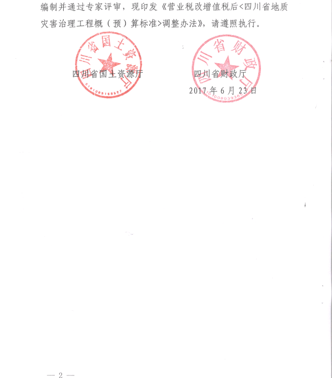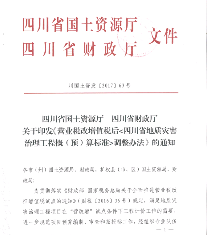 <转>川国土资发[2017]63号 关于印发营业税改增值税后《四川省地质灾害治理工程概(预)算标准》调整办法的通知