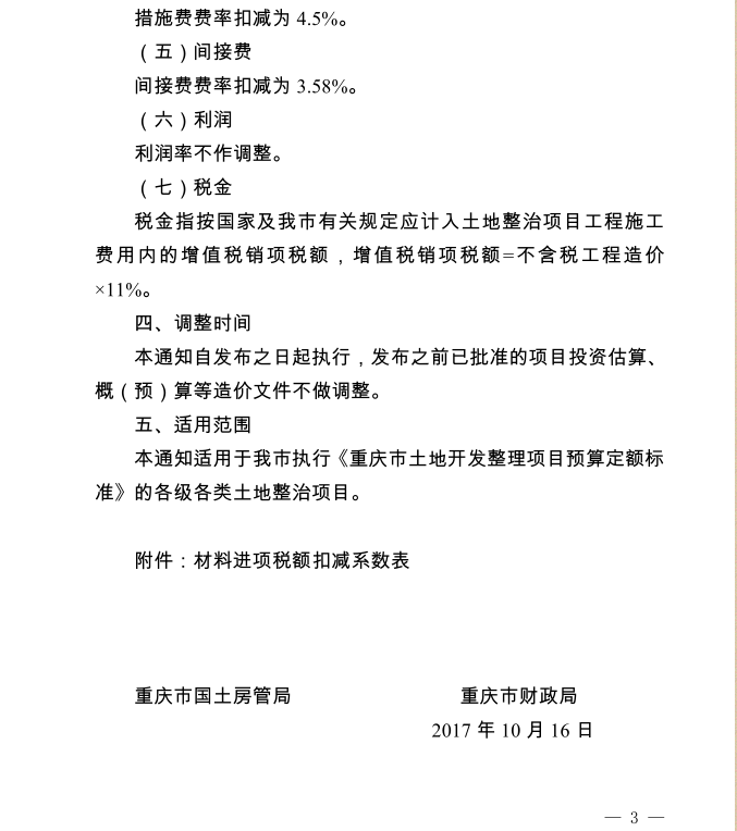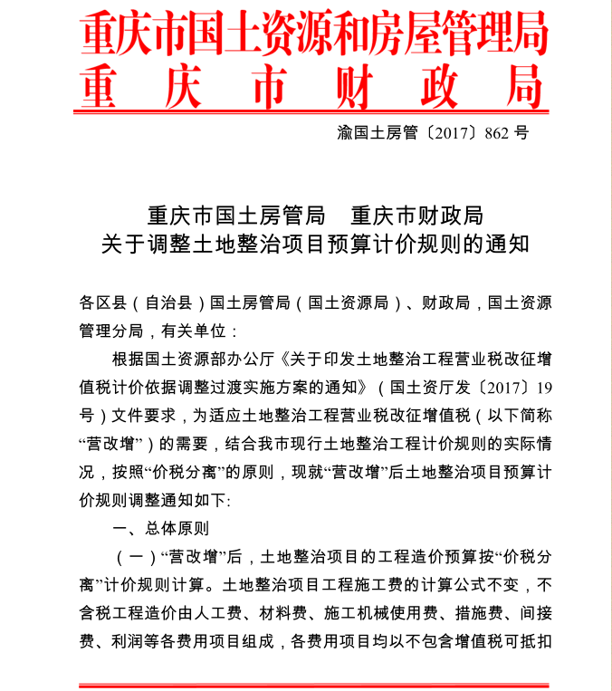 <转>渝国土房管(2017)862号 重庆市国土房管局 重庆市财政局 关于调整土地整治项目预算计价规则的通知