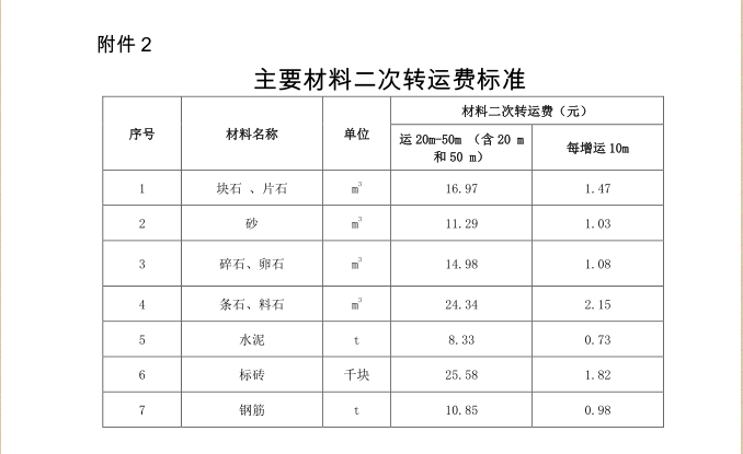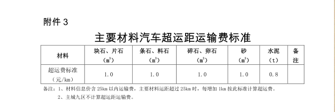 定额人工单价及材料汽车超运距运输费的通知
